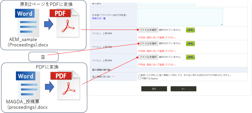 同時投稿を行わない場合のプロシーディングスのページ数は原則2ページに変更になりました(要著作権譲渡)。以下のサンプルフォームを参考に登録して下さい。